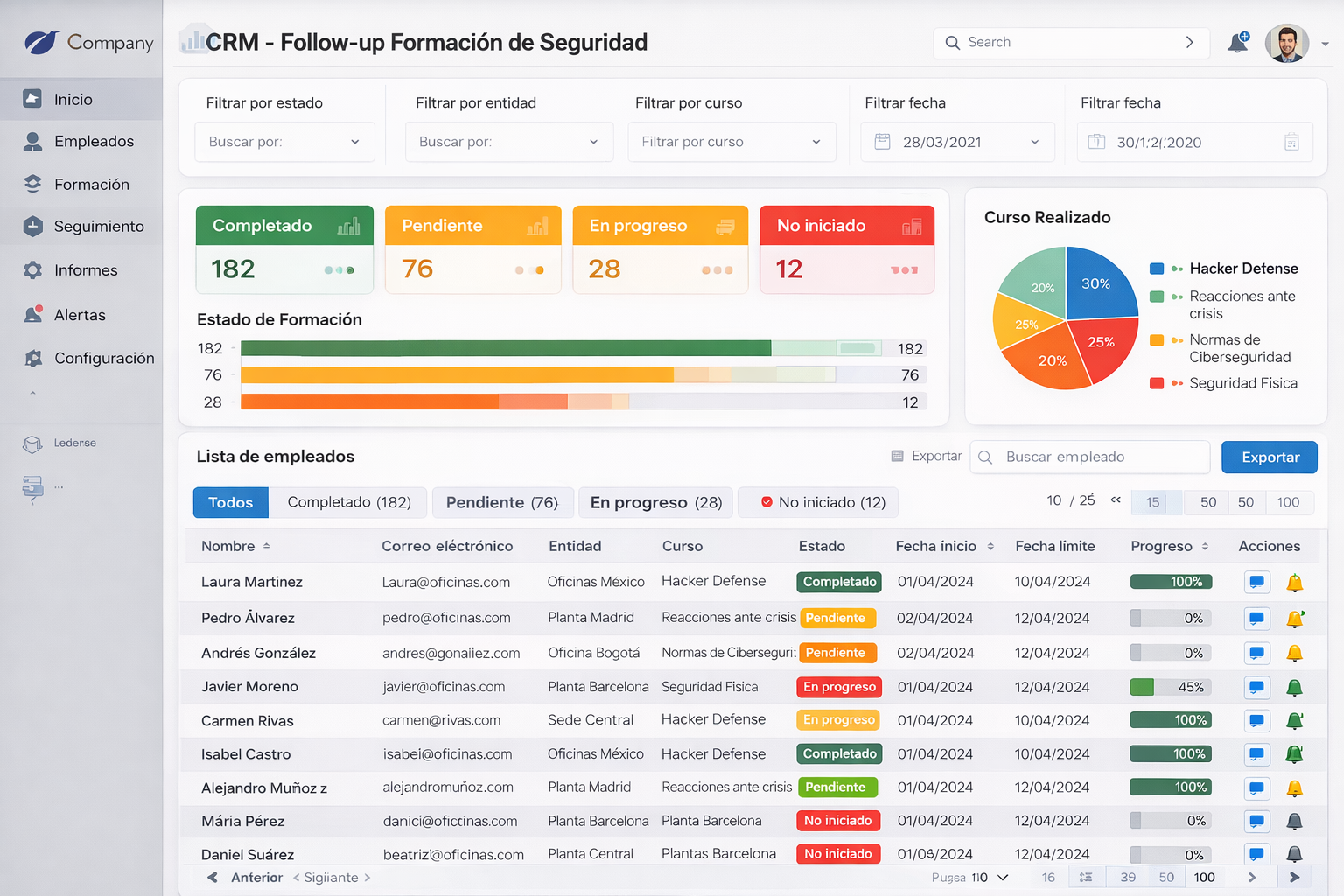 Además incorporamos un CRM de seguimiento y Vigilancia, Vigencia y Estado Formativo Personal